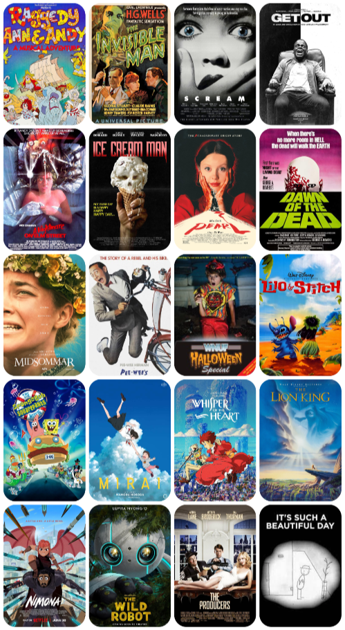 - The Cute Mario Bros- Horror movies (classic slashers/monsters)